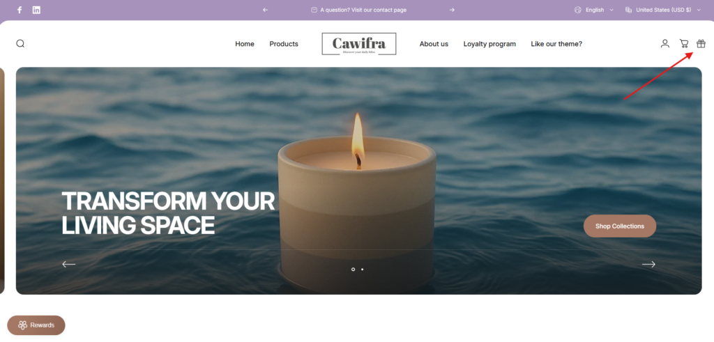 • The shape of the rewards icon (e.g., Gift box, Voucher, or any custom icon you prefer; you can upload your own image).