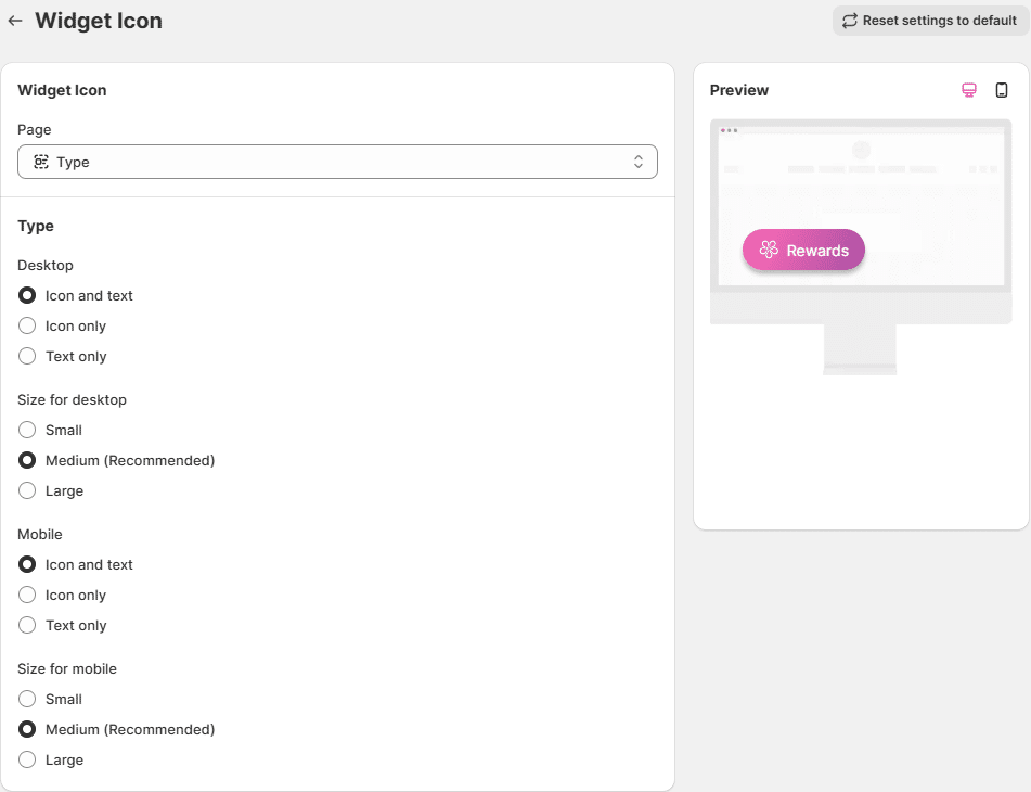 - Here, you can choose how the widget icon appears — with both a title and icon, or with the title/icon only for mobile and desktop views.