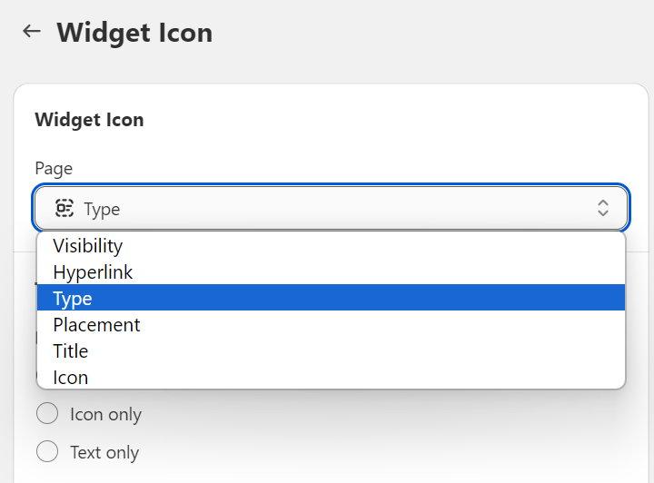To adjust the type of your widget icon, go to the Type section after accessing the Widget Icon tab.