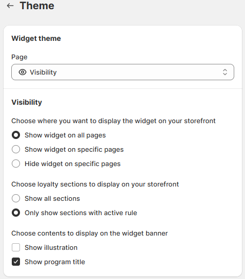To begin setting up your widget on the storefront, you need to decide where to place the widget, so that your customers can see it clearly. Go to Branding > Select Visibility.