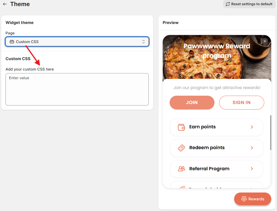 Appearance and branding play a crucial role in a successful loyalty program. A visually appealing design not only impresses customers but also fosters recognition, helping your business stand out from competitors. Strong, unique branding builds trust, creates lasting impressions, and reinforces customer loyalty. You can customize the widget by navigating to Branding > Customize in the Theme section.