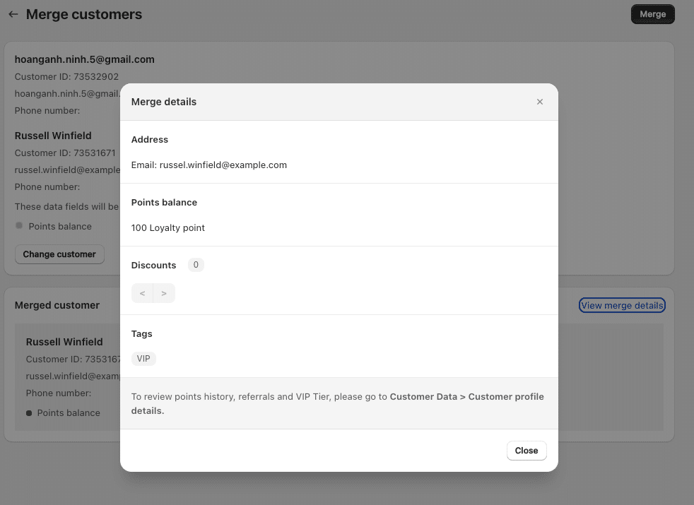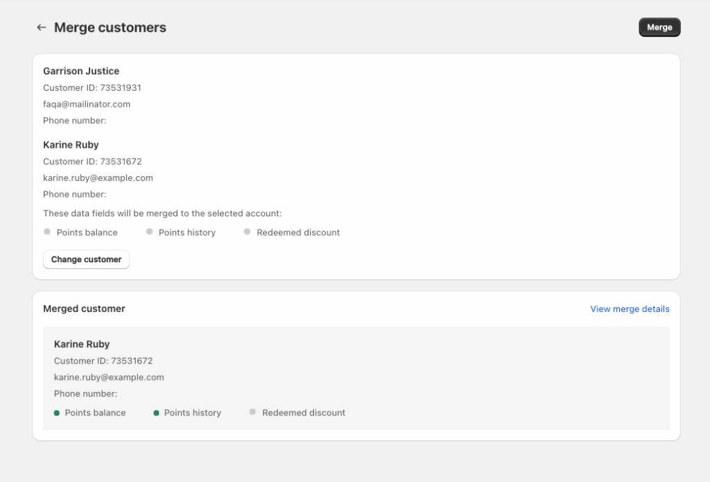 • Points Balance: Combined total after merging.