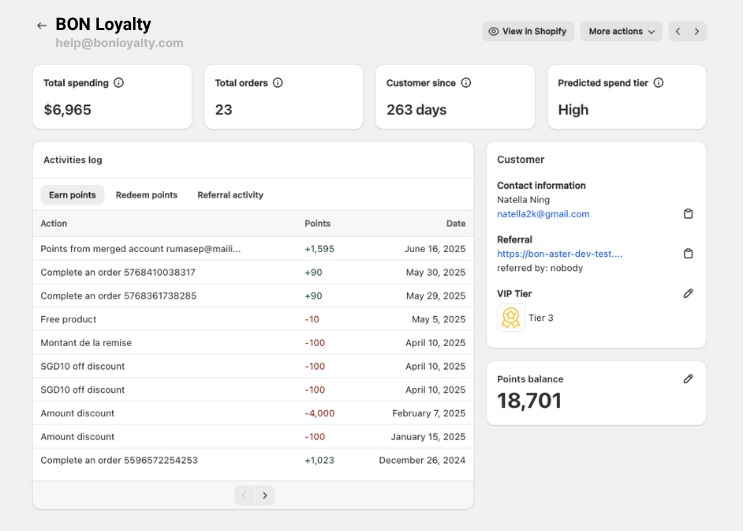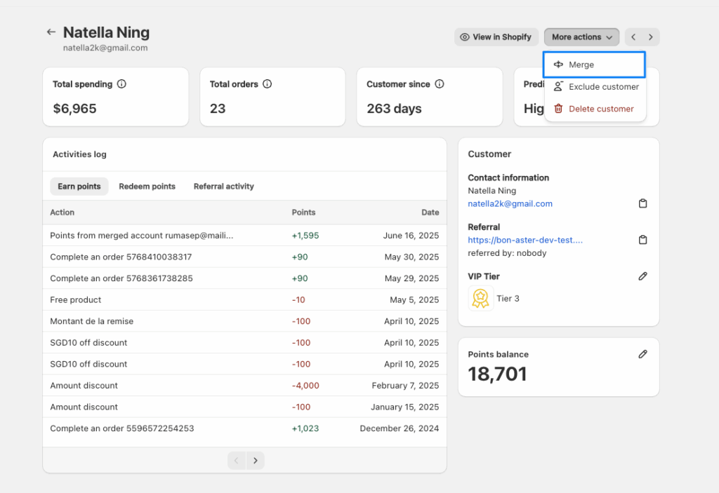 • Customer tag: VIP Tier tag to characterize customers in Shopify Admin.