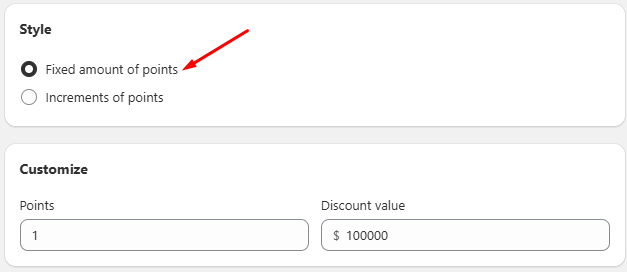 You can choose between two types of Amount Discounts depending on how you want your customers to redeem their points: