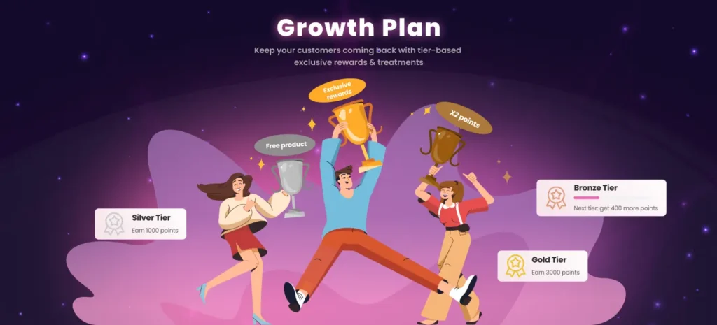 The BON Loyalty Growth plan is designed for medium and fast-growing businesses. Its VIP membership program goes beyond simple rewards, offering personalized experiences based on how much your customers spend and interact with your store.