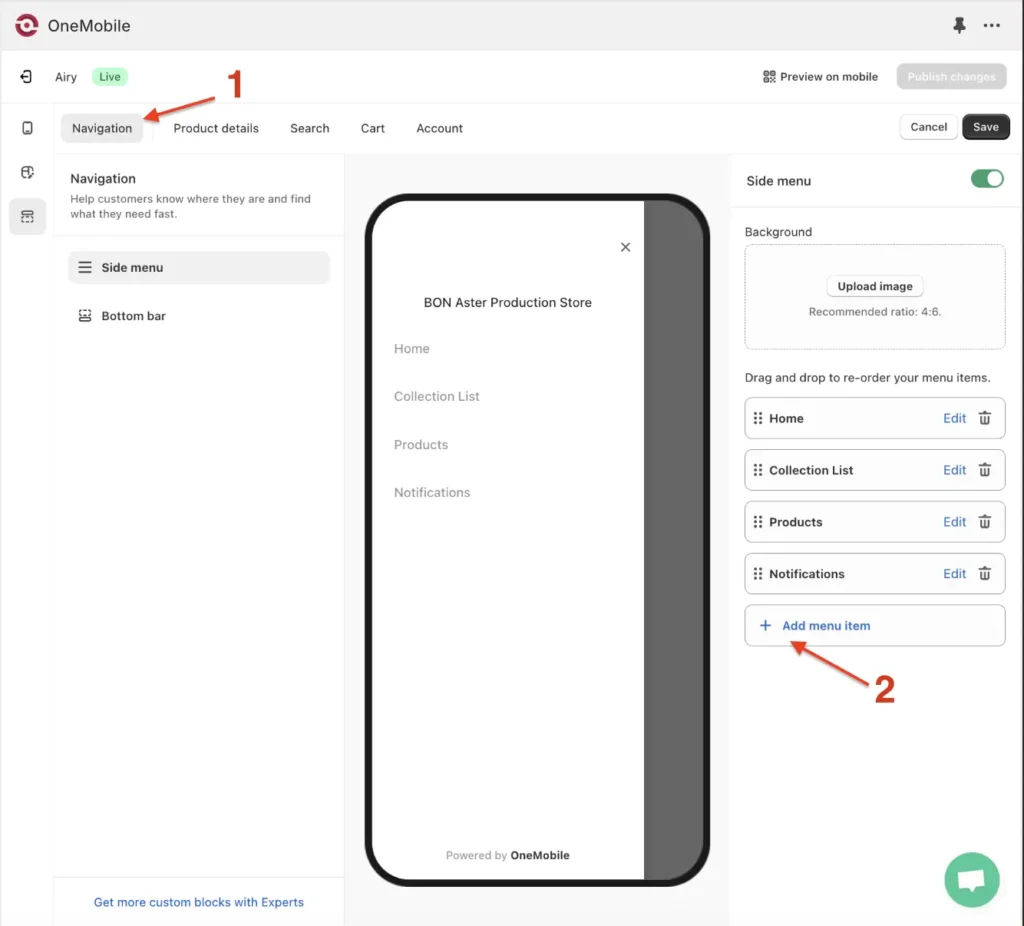 Step 1: Go to App Design> Customize > Navigation. Then, choose Add menu item