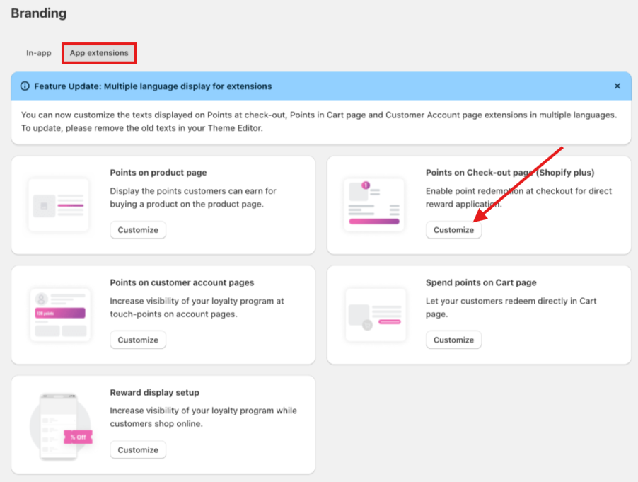 - You can adjust the color of text to make it stand out or blend with your design: Go to Branding > App extensions > Points on Check-out page