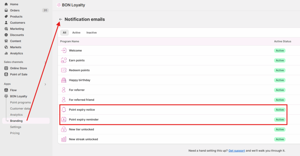 Don’t forget to set up Point Expiration emails to keep customers informed before their points expire.