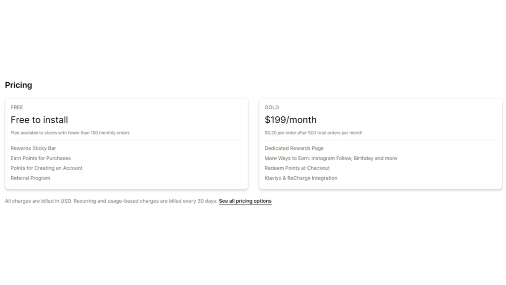 価格:Yotpoは無料でインストールできますが、より多くの機能を得るためには、ゴールドで月199ドルを支払う必要があります。