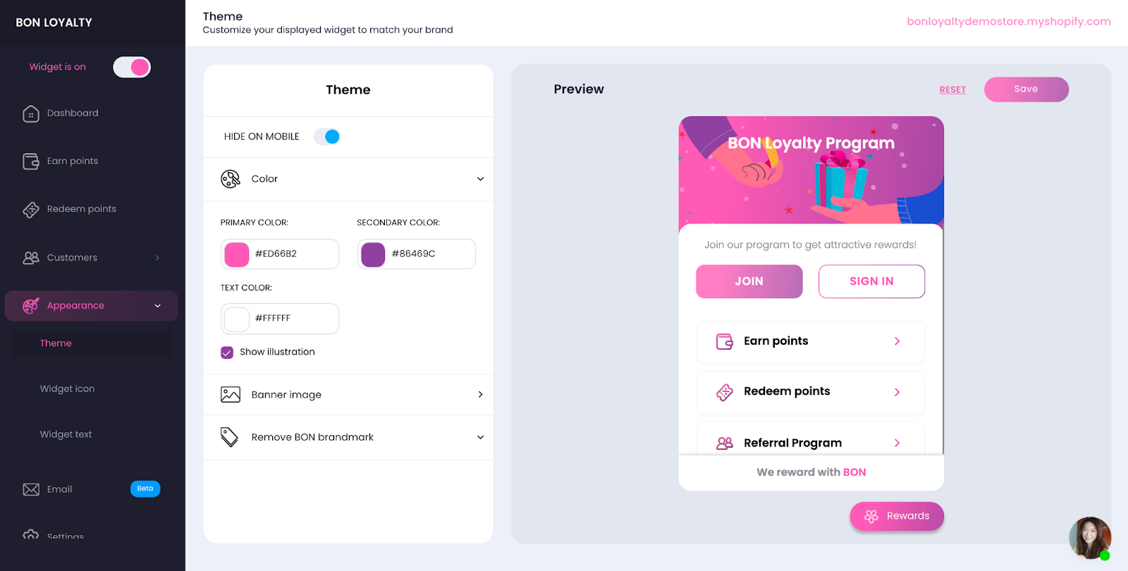 We are happy to announce the Hide on mobile feature. Now you can hide the loyalty widget on mobile. Simply go to Appearance > Theme and enable the Hide on mobile button. Enable the Hide on mobile feature means the launcher will display on large desktop screens but will be hidden on mobile screens.